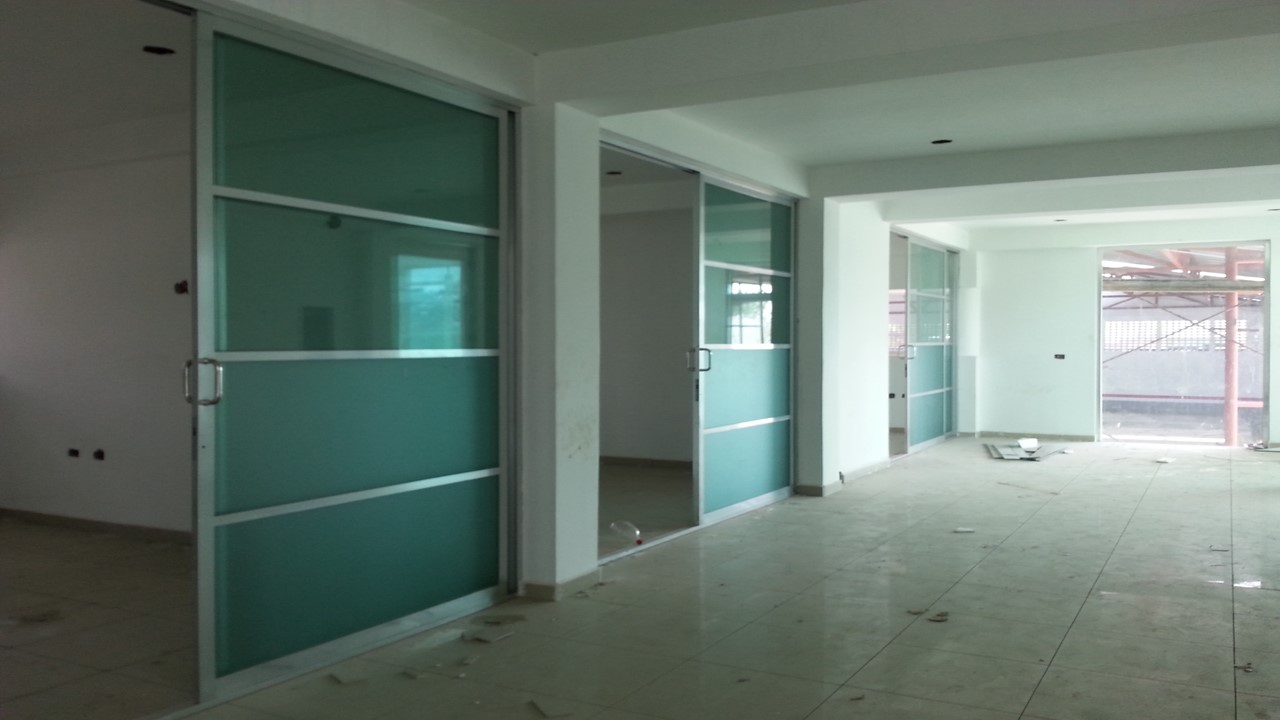1. Frente con oficinas de tres niveles y área de taller.